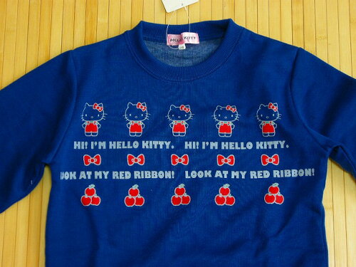 小さなキティー・リボン・りんごが横一列にならんだキュートな柄! 背中にもキティーがプリントされています。